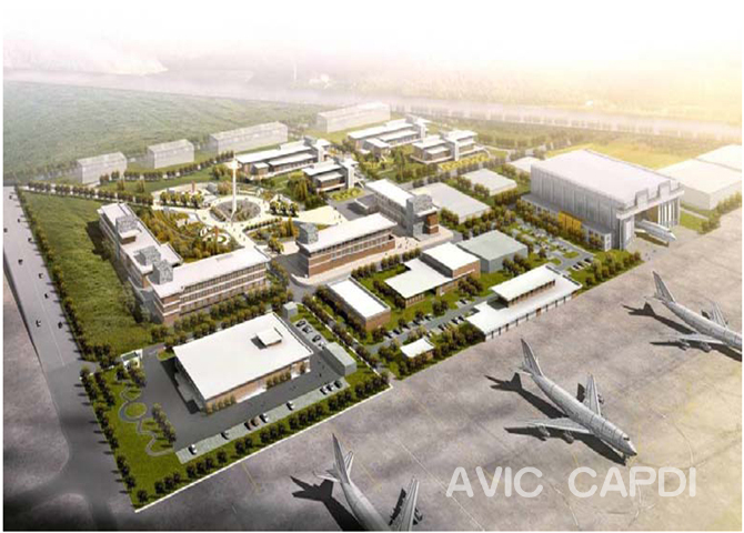 área de planejamento: 540 000㎡ àrea de constru??o: 230 000㎡ Composi??o de projeto: terminal de carga, zona de manuten??o de avi?o, refei??o de avi?o, zona de escritório complexo, zona de apoio complexo e zona de treinamento.