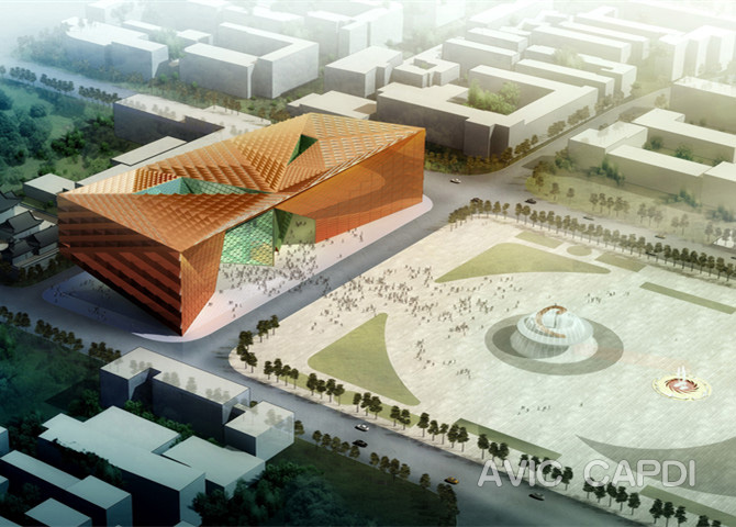 "Diamante do ouro" novo Chengdu Museu Municipal ocupa uma área de 72 000 metros quadrados, cobra uma área inteira oeste de Pra?a Tianfu. Edifício está rodeado por uma camada de placa de liga de cobre sólido, rodeado por uma camada exterior do tipo de rede "véu" transparente, de modo que a camada exterior tem uma cor dourada profunda."à noite, a grade será mais transparente, a luz dourada se espalhar, para projetar o fundo de Sichuan jogo de sombra tradicional " no interior do edifício usa uma variedade de cortes e orifícios para definir, uma camada de placa de cobre será trazido à luz e paisagem em camaras. |