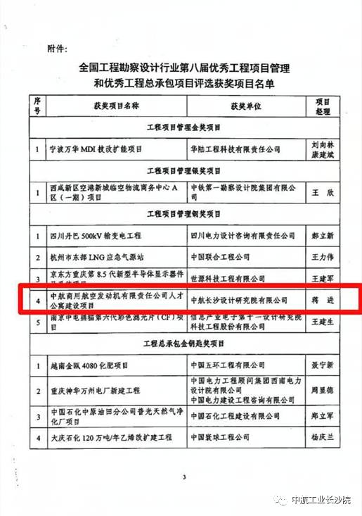 3月20日,從中國勘察設(shè)計(jì)協(xié)會(huì)傳來喜訊,長沙院中航商用航空發(fā)動(dòng)機(jī)有限責(zé)任公司人才公寓建設(shè)項(xiàng)目獲得全國工程勘察設(shè)計(jì)行業(yè)第八屆工程項(xiàng)目管理銅獎(jiǎng)項(xiàng)目。