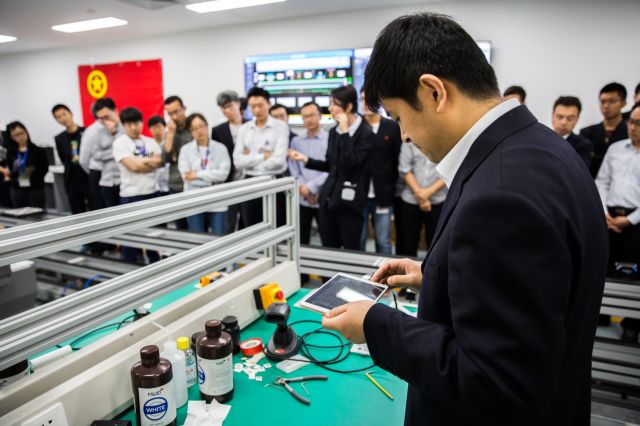 ▲青年員工參觀物理模型線
