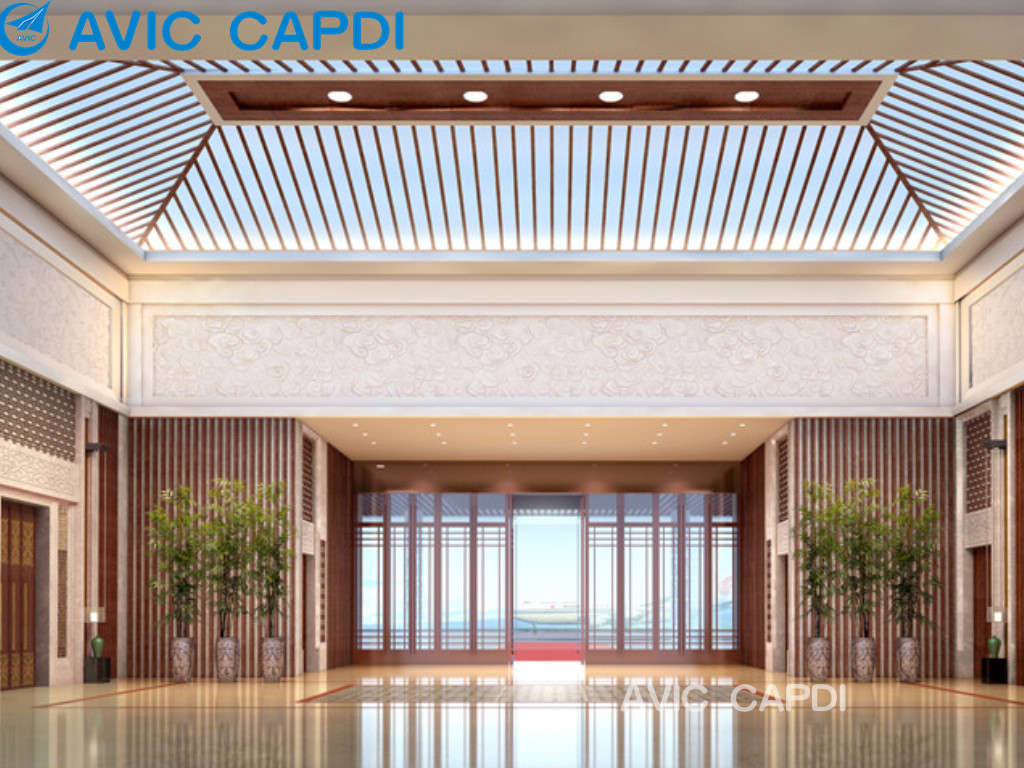Echelle de construction: Superficie occupée est d'envrion 39985.5 m2 ; superficie construite est de 4238.7 m2. Traits caractéristiques: Réservé à la Conférence de Sommet G20 qui a eu lieu à la ville de Hangzhou en septembtre 2016 et aux jeux asiatiques 2022, ce Terminal sert à acceuillir les dirigeants d'Etat. Il comprend la salle d'attente d'aéroport et l'acceuil dont la salle d'attente se situe à la zone centrale de base; l'arrangement du plan de masse s'étend sur axe médian de chemin circulaire qui est autour du batiment avec une entrée principale et une entrée de réserve afin d'éviter le brouillage de croisement de circulation. |